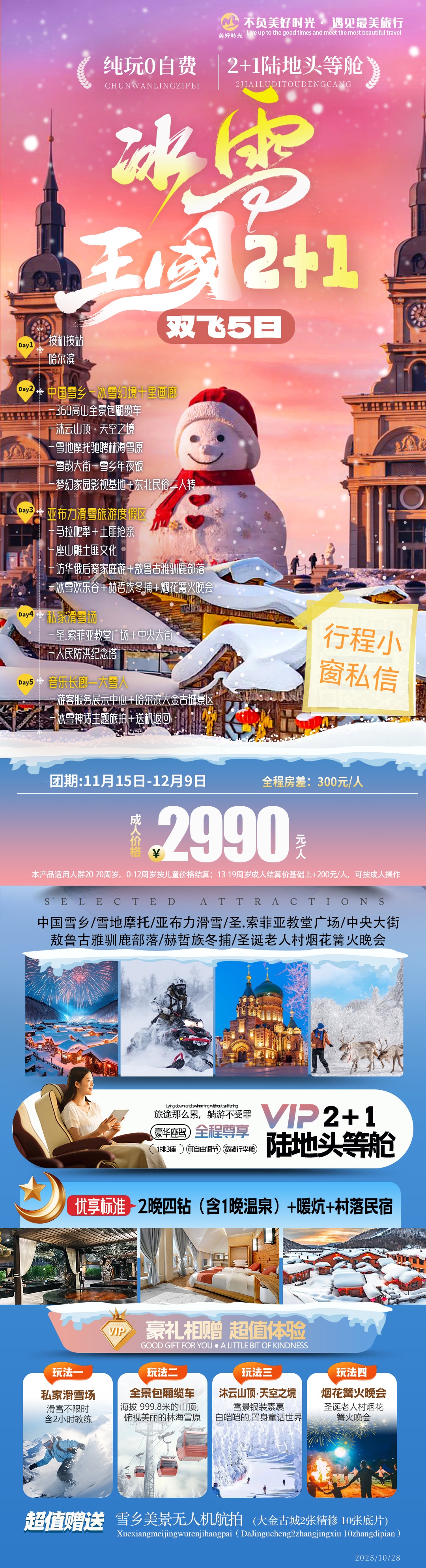 ❄【冰雪王国】0自费5日游