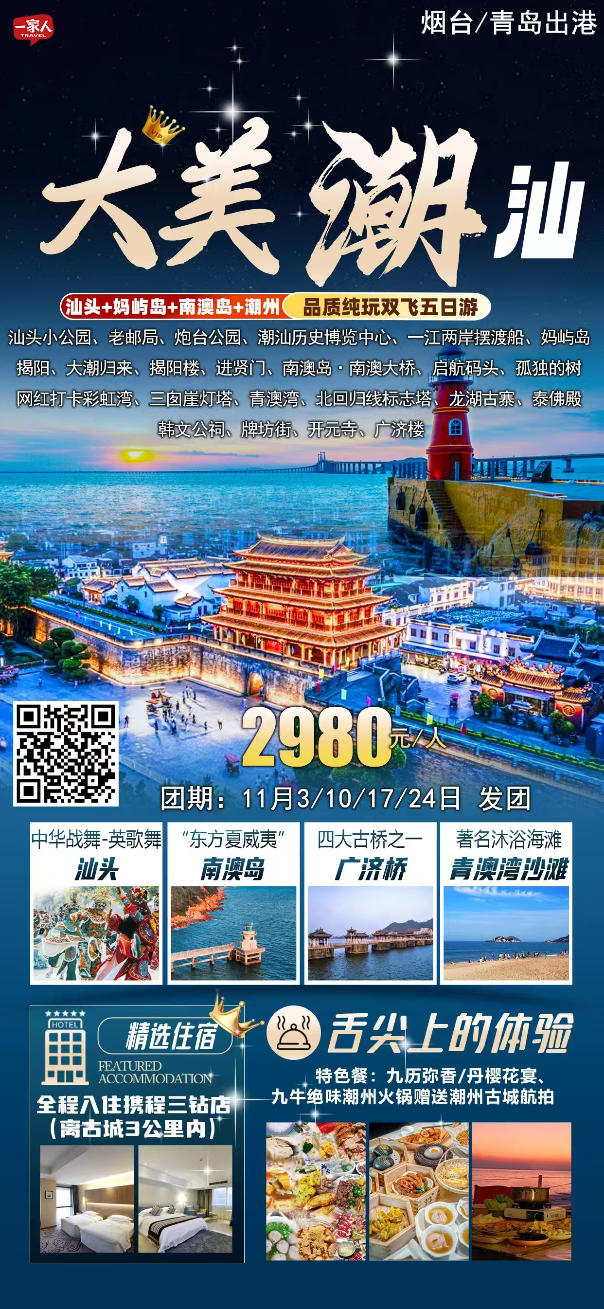 11🈷️3/10/17/24号💯纯玩【大美潮汕】双飞5日游