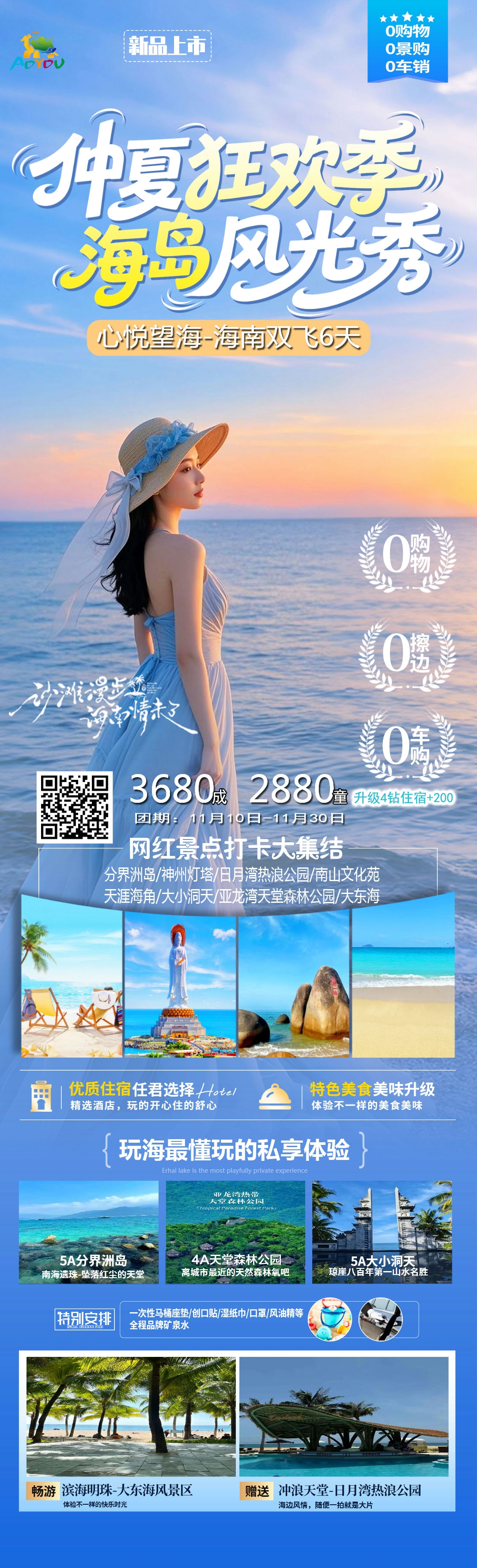 分界洲/南山/天堂森林公园/天涯海角/大小洞天/大东海/日月湾热浪公园/神州灯塔