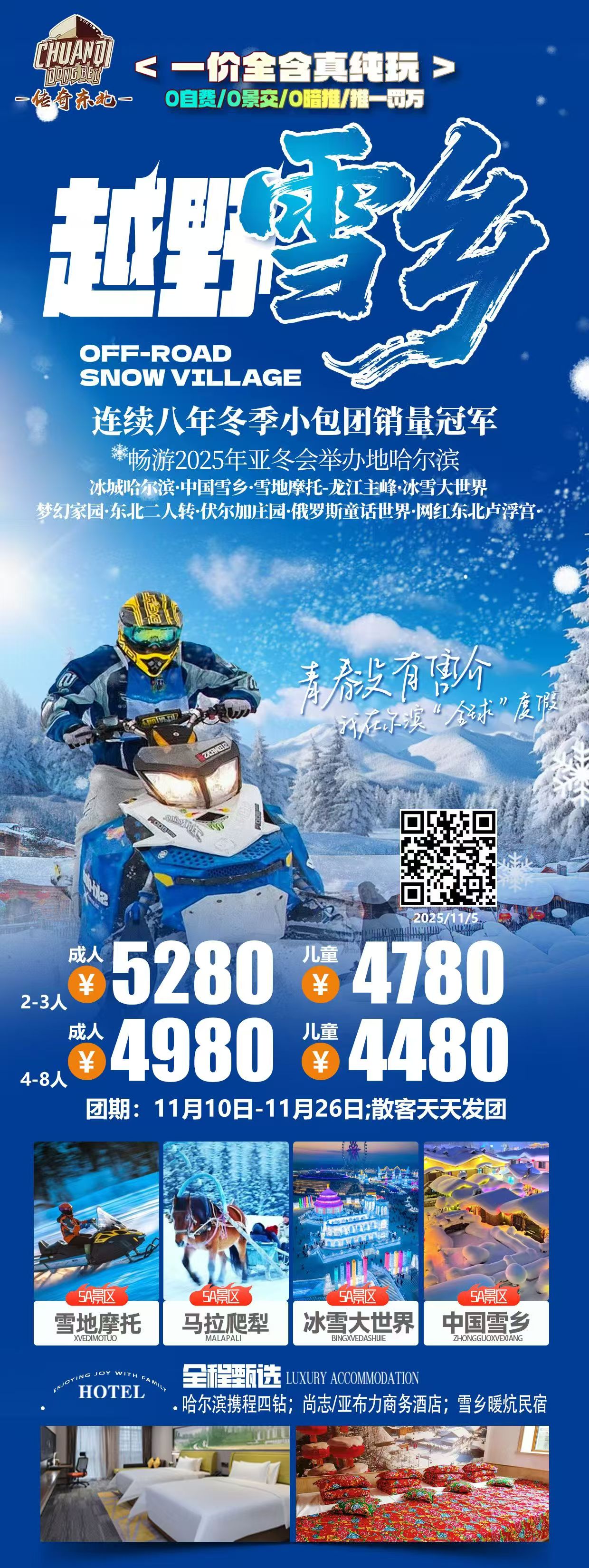 线路名称:【越野雪乡】plus升级版哈哈进出双飞6️⃣日游