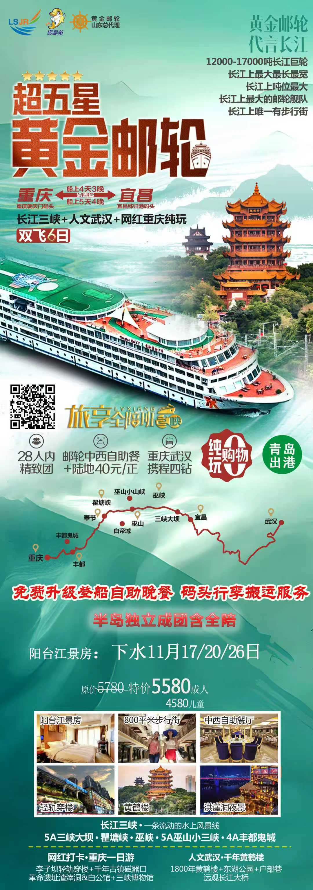 线路名称:🧨黄金邮轮+网红重庆+人文武汉双城联动双飞六日