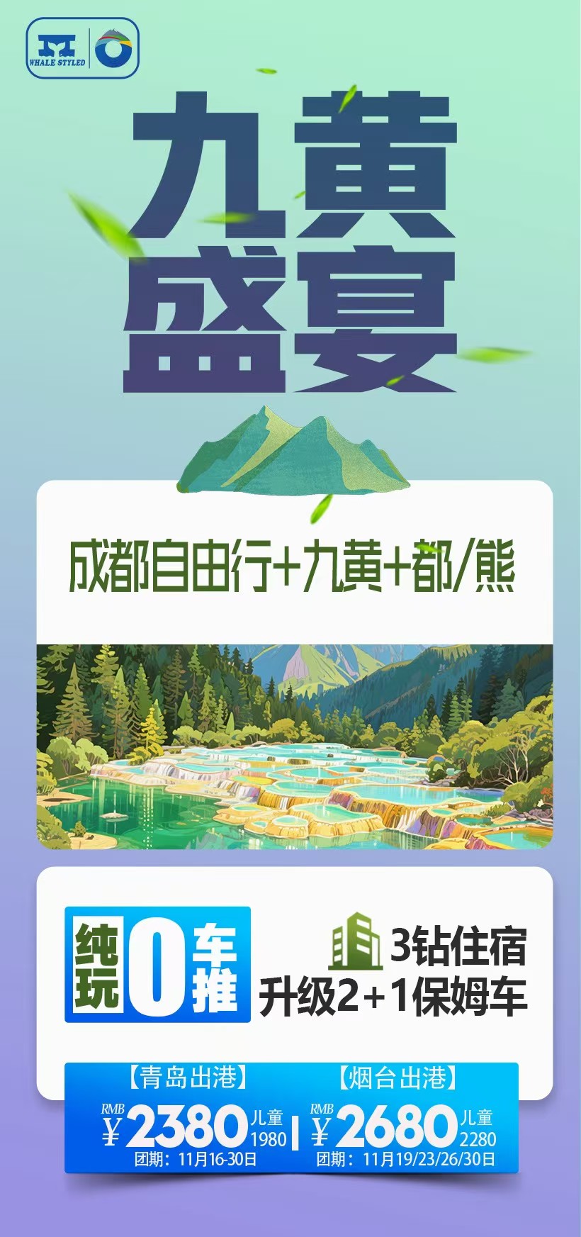 线路名称:纯玩九寨+黄龙+成都自由行双飞六天