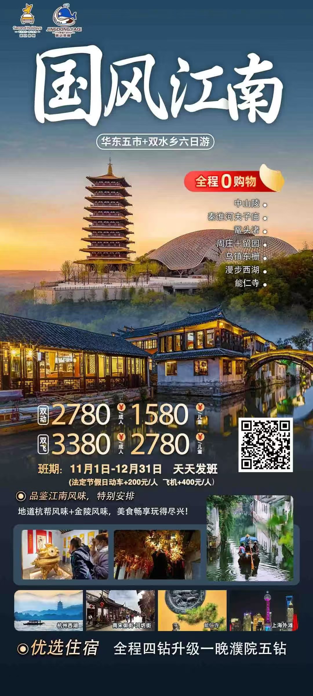 线路名称:💗【国风江南】 南京|无锡|苏州|杭州|上海双飞六天