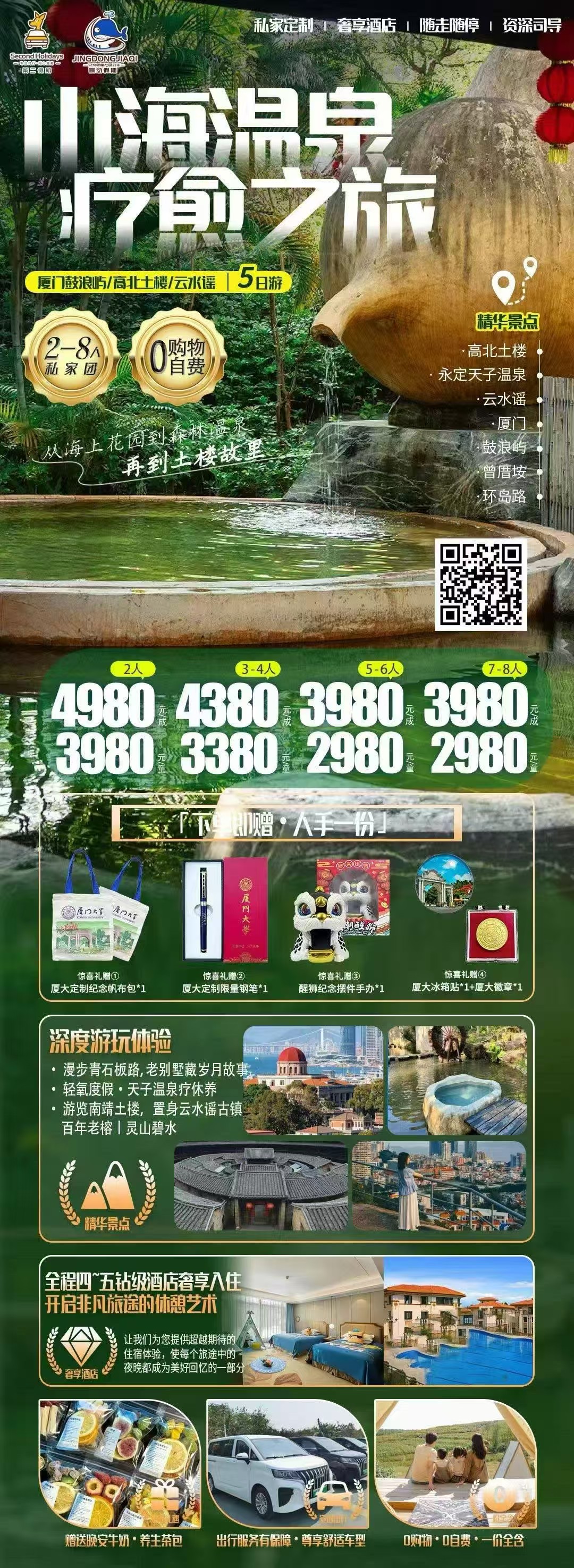 您预订的是:   ✈️鼓浪屿、高北土楼、云水谣双飞5️⃣日游