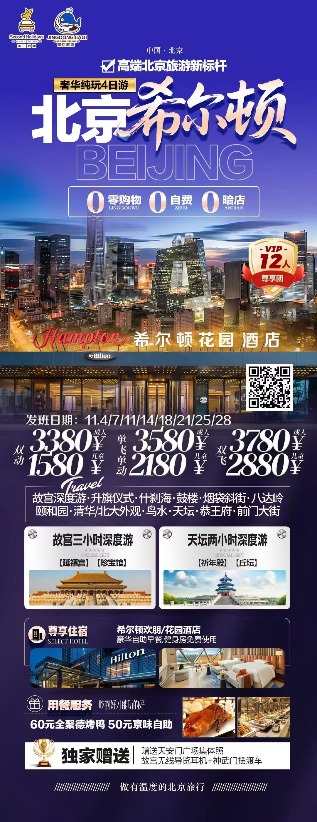 您预订的是:   希尔顿 北京小资双动四日游