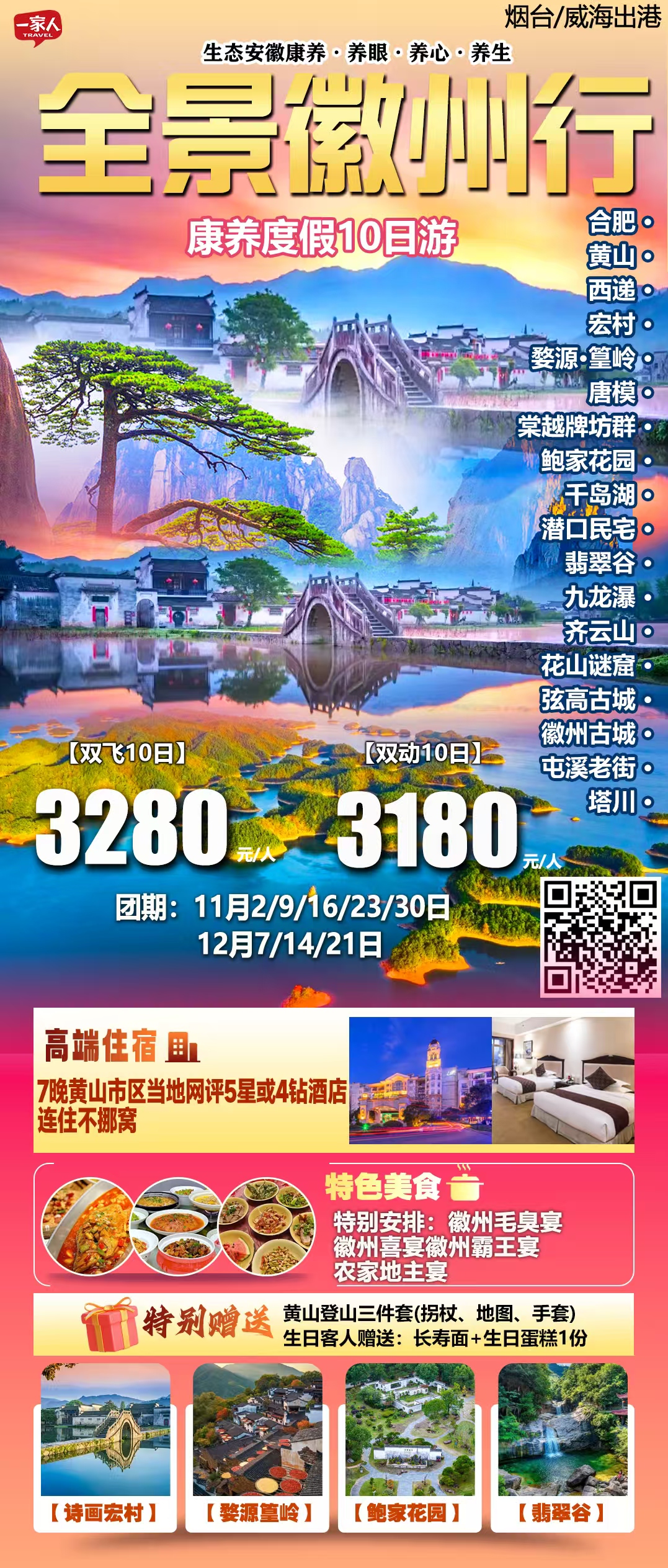 11🈷️16/23/30号【全景徽州行】双飞10天