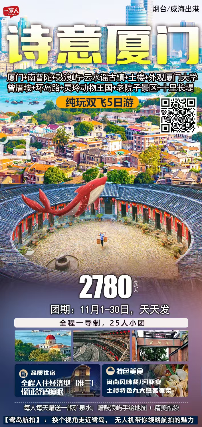 线路名称:【诗意厦门】双飞5日游