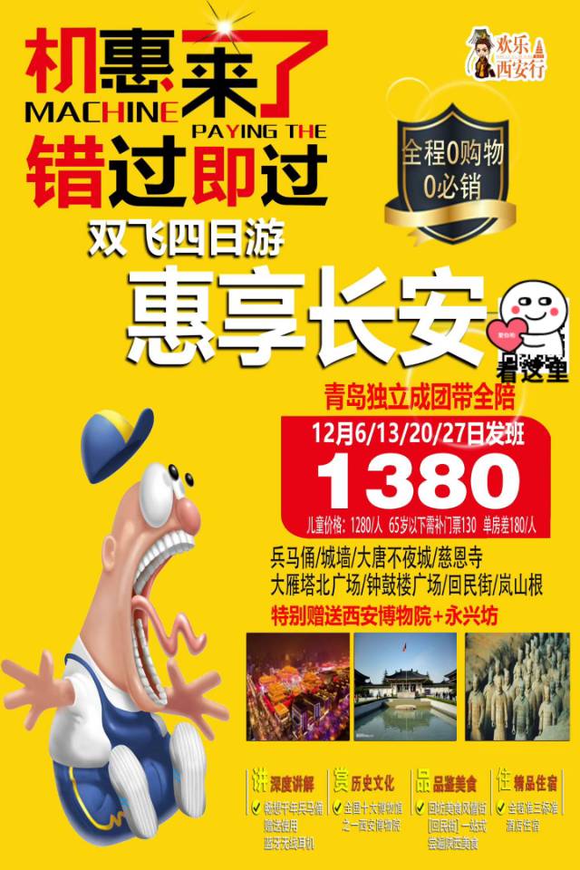 线路名称:半岛独立成团西安双飞四天