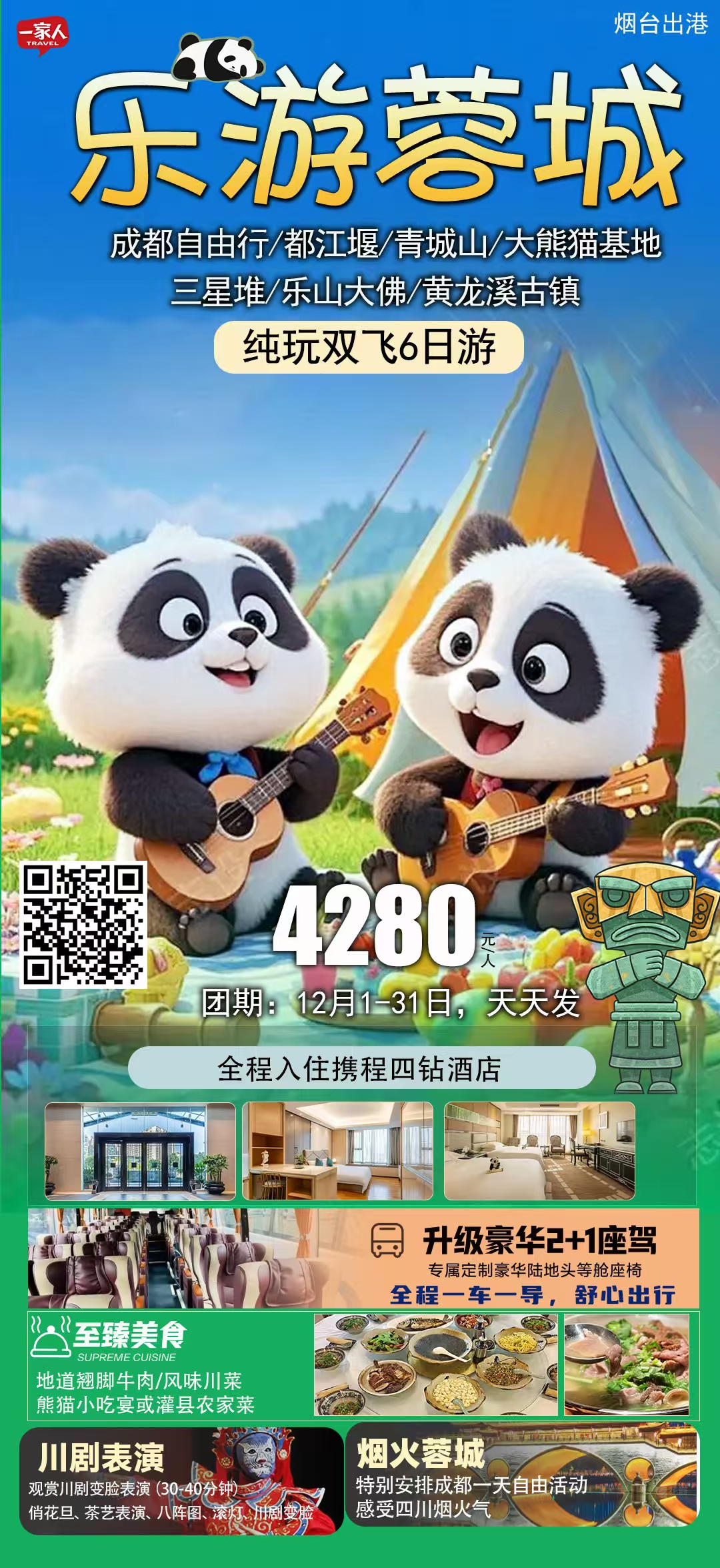 线路名称:12🈷️真纯玩💯半自由行【四川·乐游蓉城】双飞6天