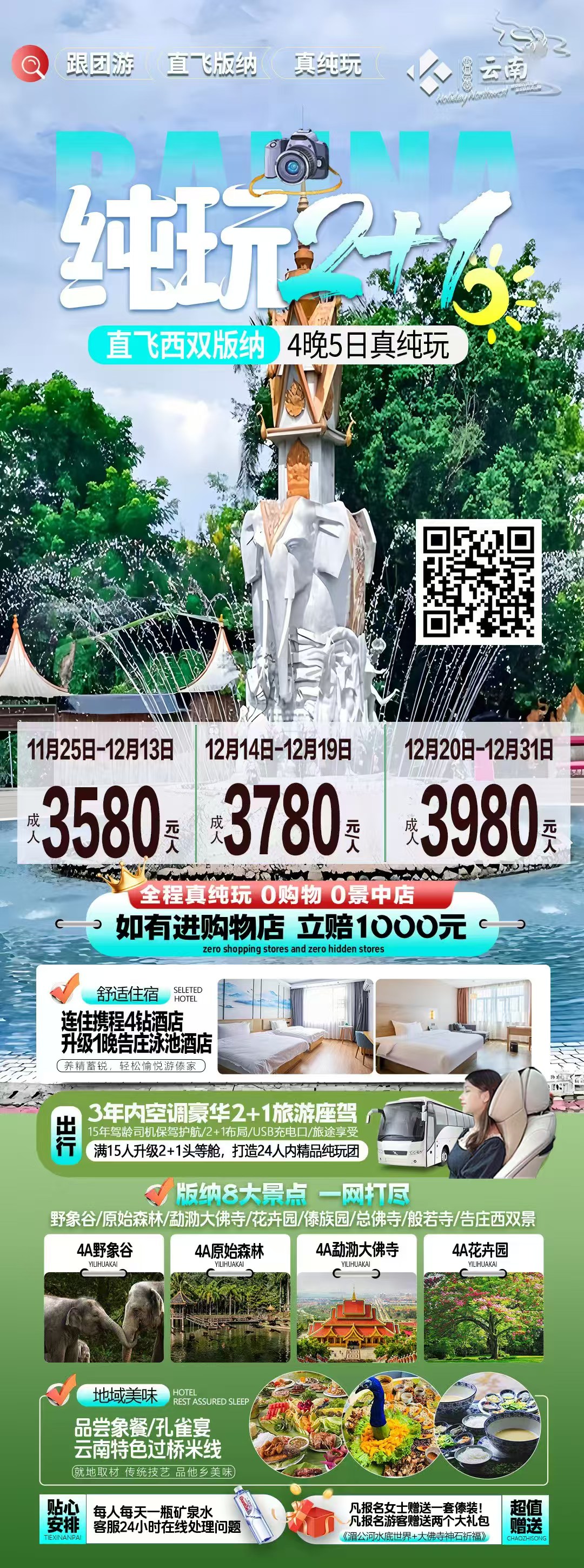 您预订的是:   【纯玩2+1】烟台直飞版纳纯玩四晚五天