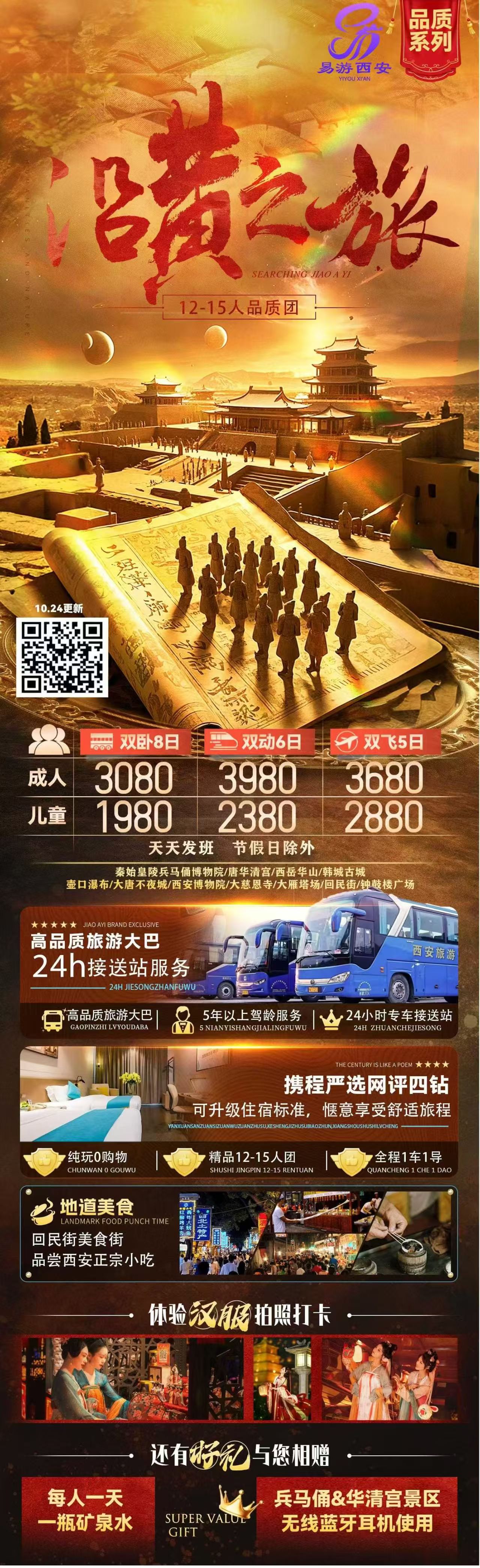 💎赠旅途大礼包:兵马俑华清宫双线耳麦+非遗皮影摆台+汉服唐装体验+每人每天一瓶水!