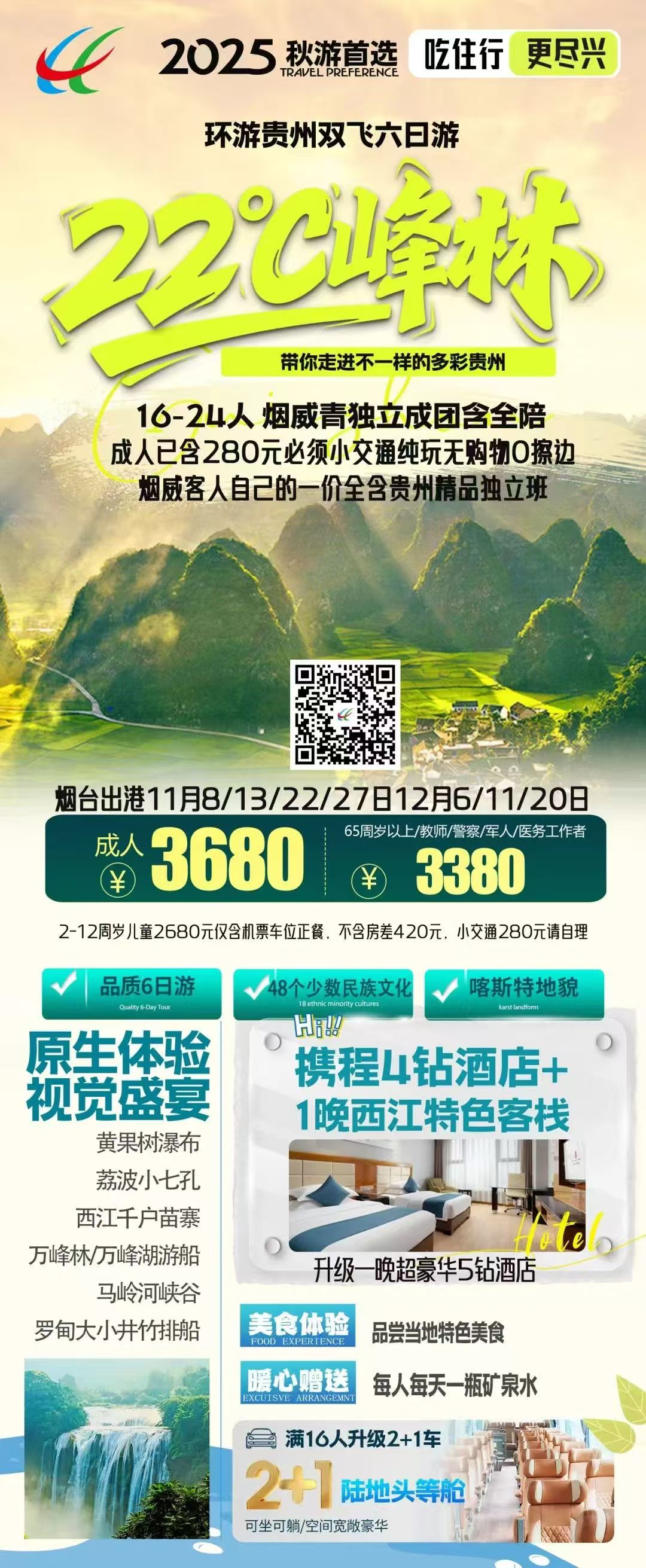 线路名称:【22°C·峰林】暖阳山水贵州独立班双飞六天