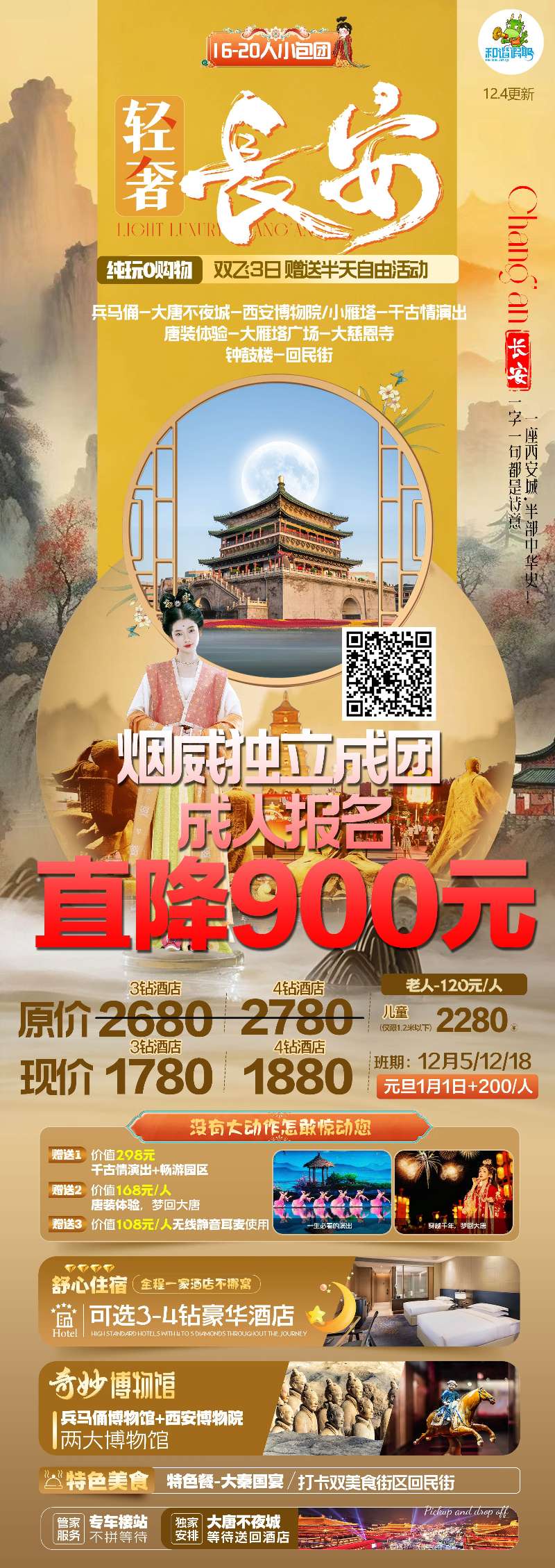 您预订的是:   -烟威独立班【轻奢长安双飞三天】