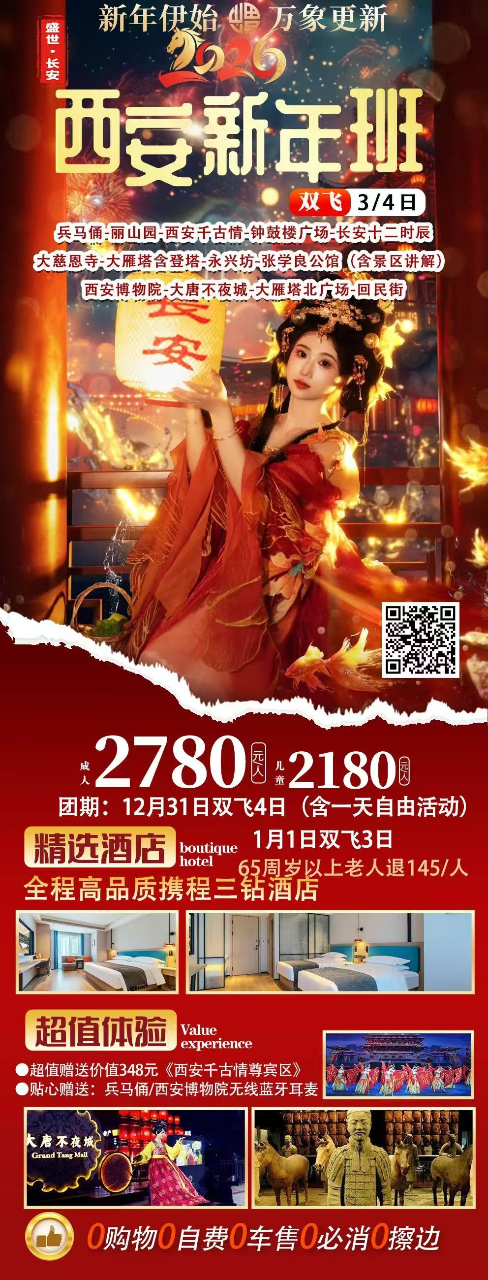 🎈西安博物院➕兵马俑➕丽山园➕西安千古情➕钟鼓楼广场➕长安十二时辰➕永兴坊➕大慈恩寺➕大雁塔登塔➕张学良公馆