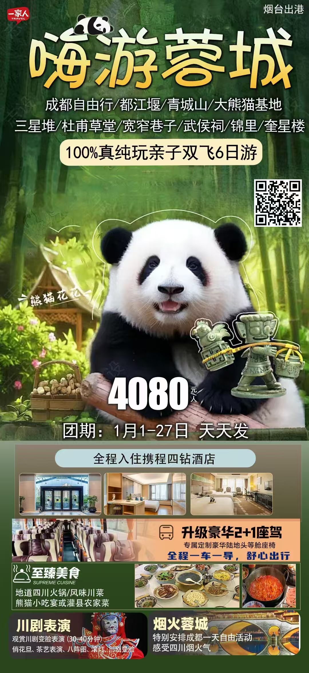 1🈷️真纯玩💯半自由行💞【四川·嗨游蓉城】双飞6天