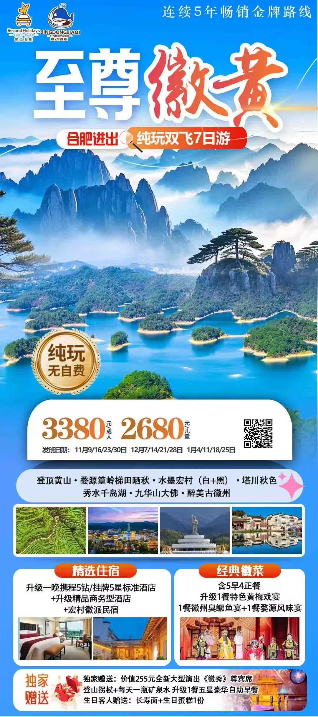 您预订的是:   🥳【至尊徽黄】双飞7日游