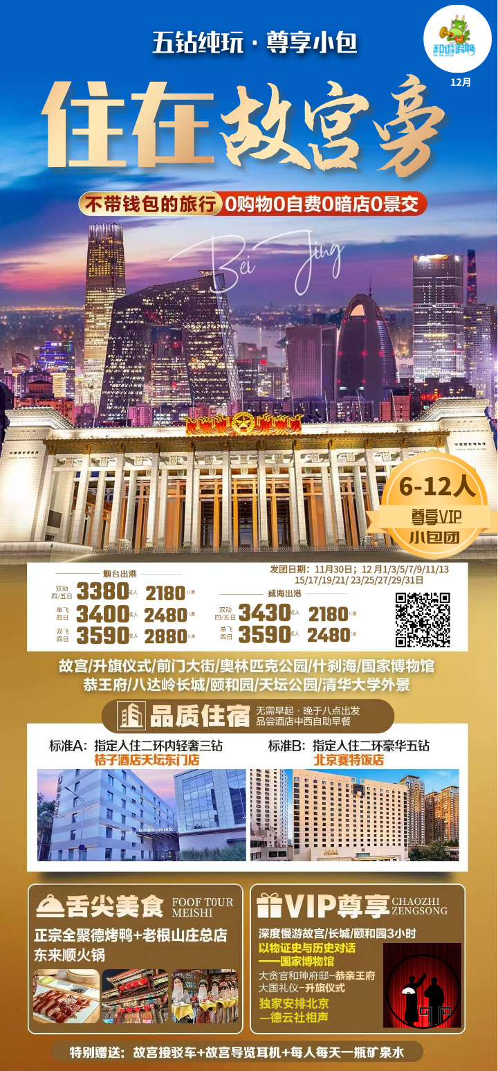 线路名称:住在故宫旁-北京单飞单动四天