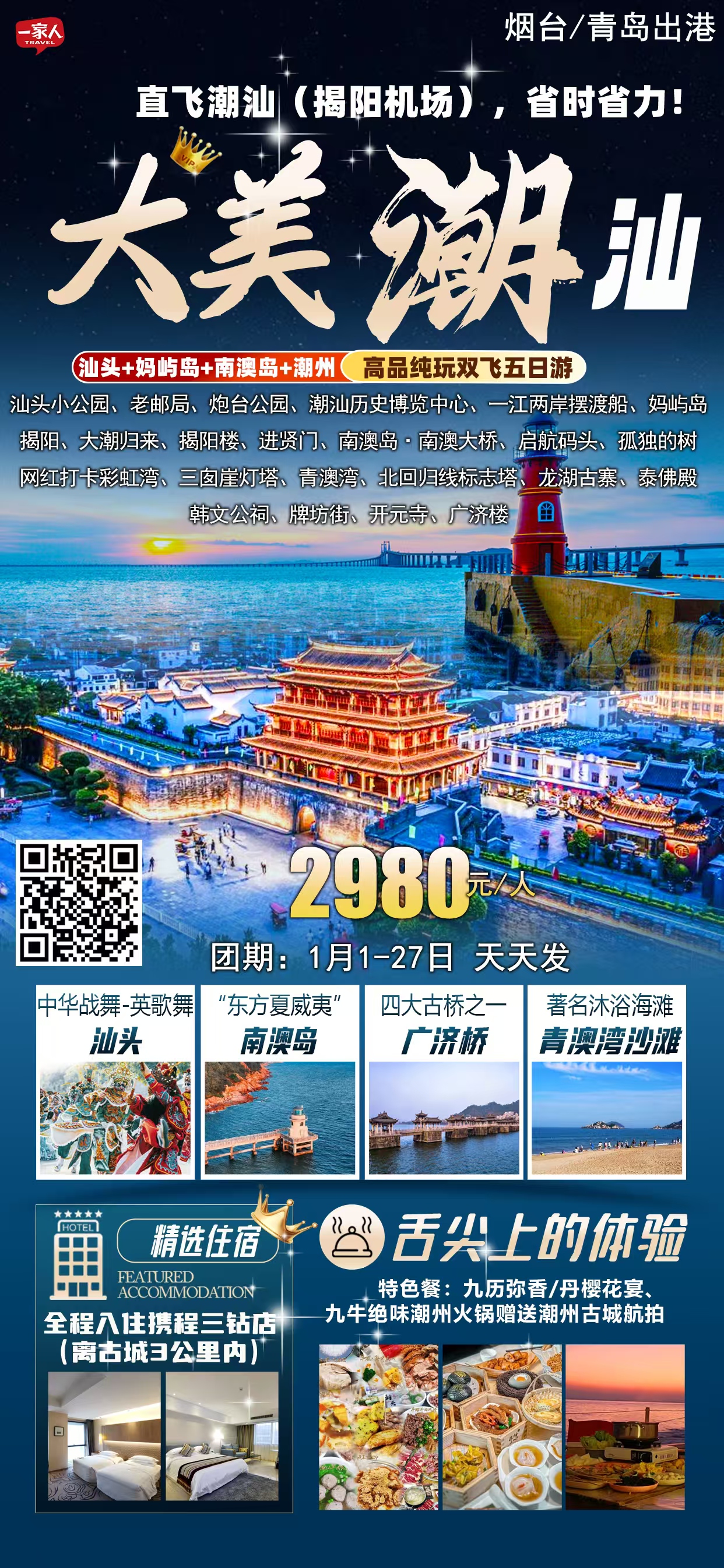 线路名称:1🈷️《直飞潮汕》💯纯玩【大美潮汕】双飞5日游