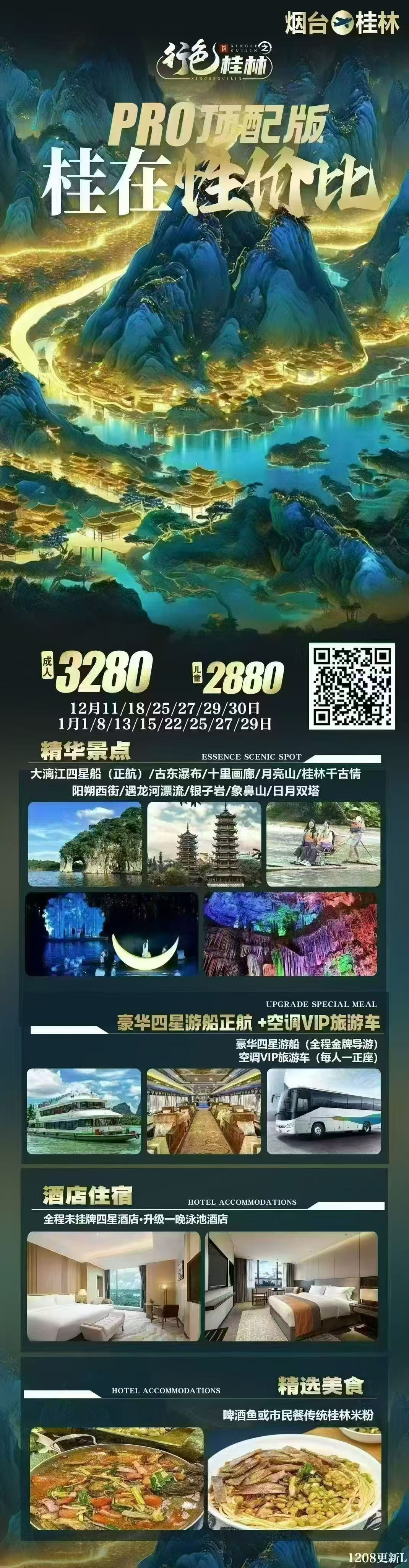 🛫烟台桂林1月1/8/13/15/22/25/27