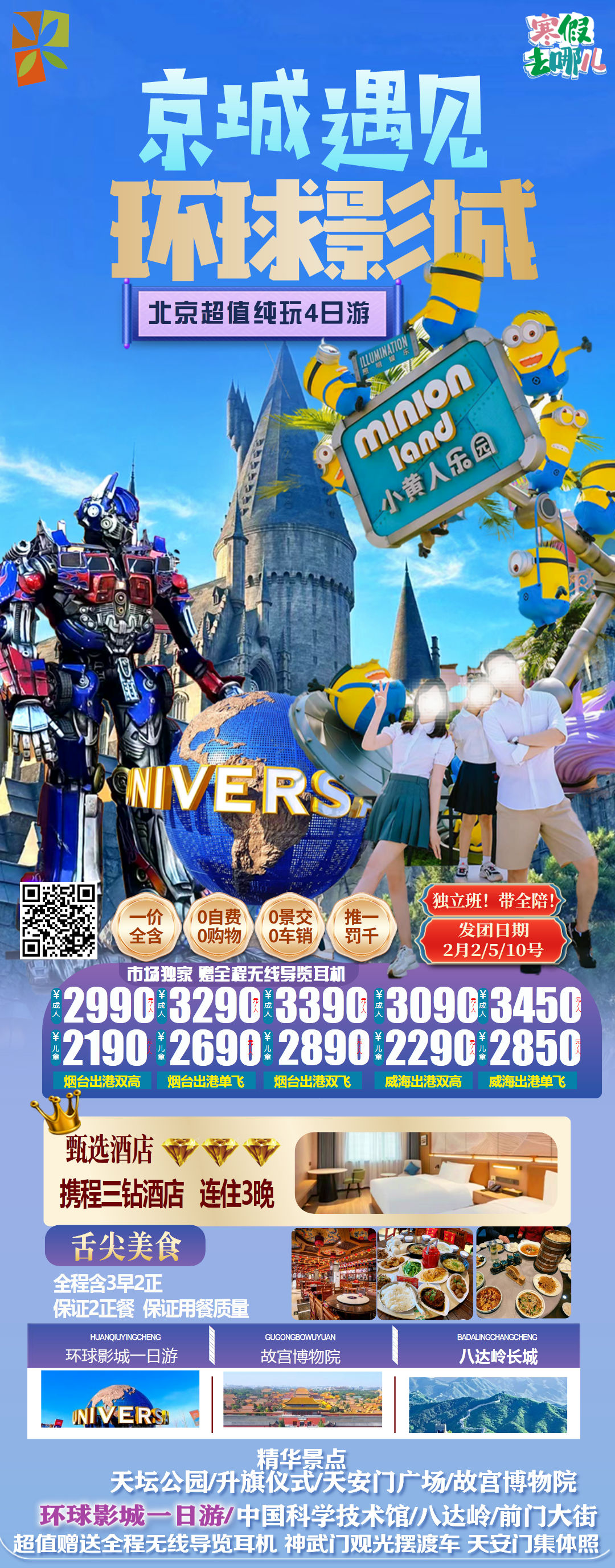 【京城遇见环球】环球4日纯玩 2.2/5/10发团,一价全含,环球➕科技馆,住三钻