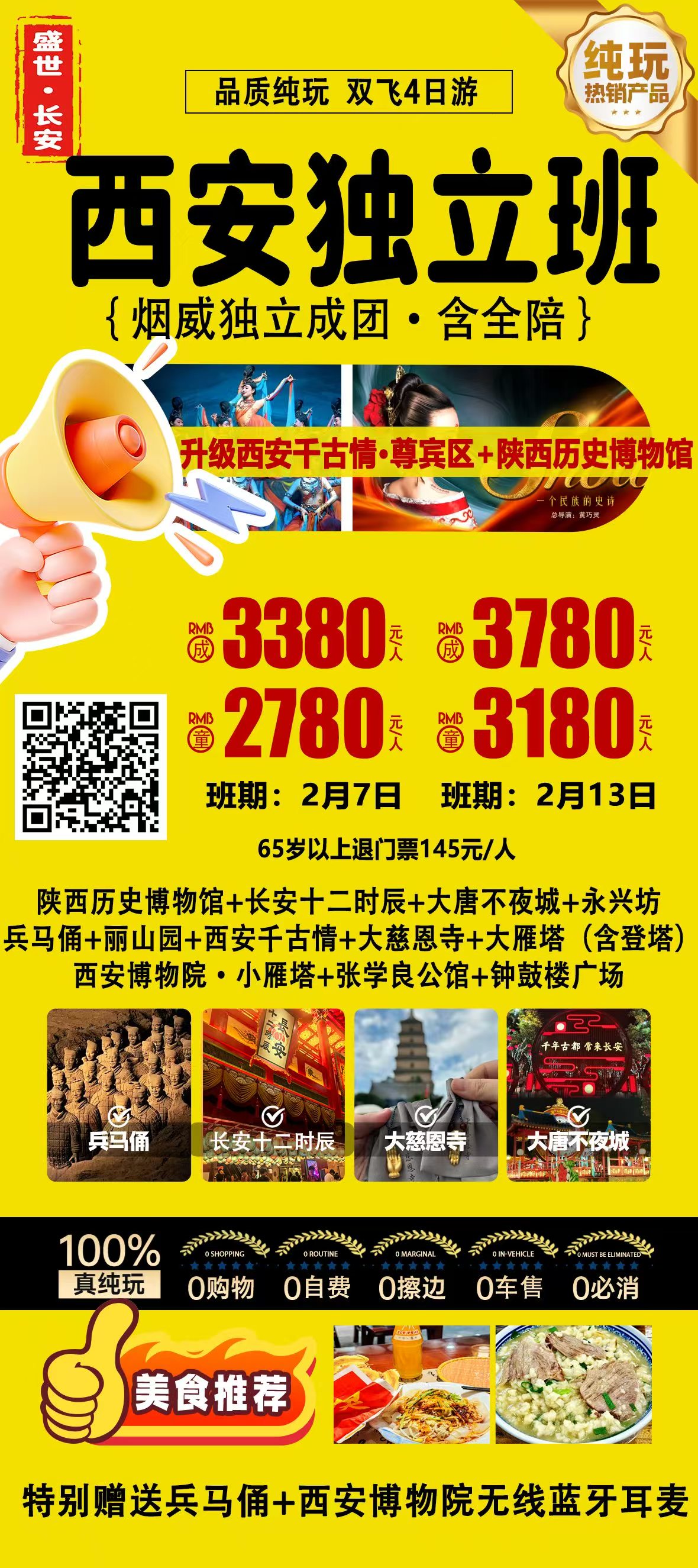 您预订的是:   寒假🔴西安独立班】双飞四日