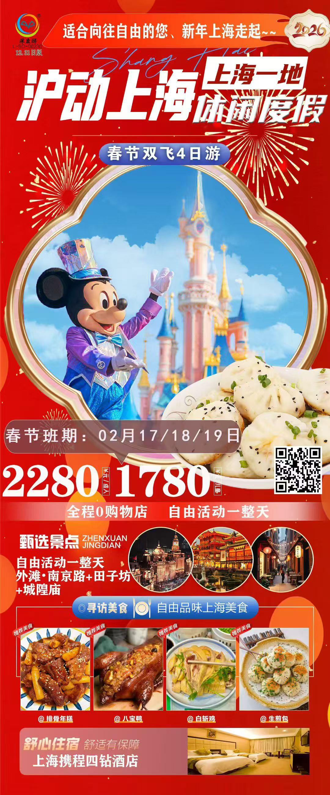线路名称:🚩 沪动上海·春节上海一地双飞4日游