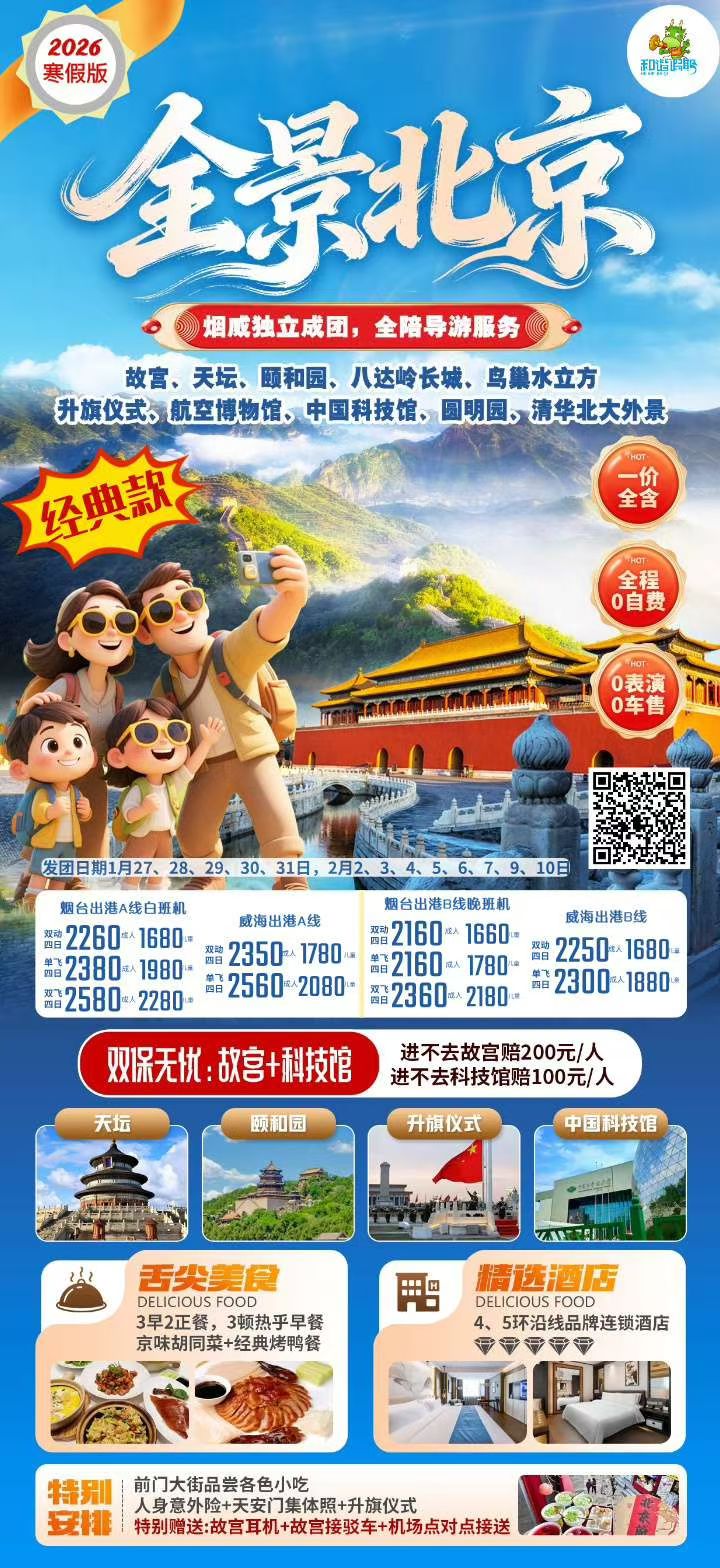 线路名称:🎓寒假~全景北京单飞单动四天