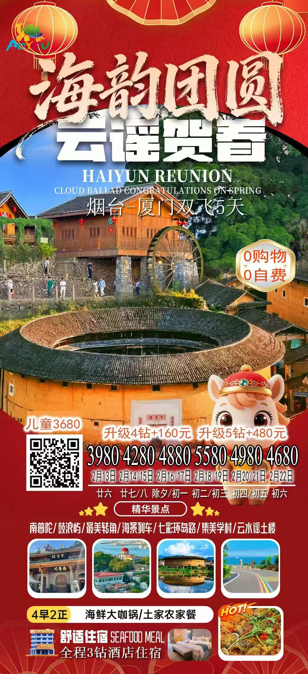 线路名称:厦门过大年-海韵团圆 烟台-厦门双飞5天