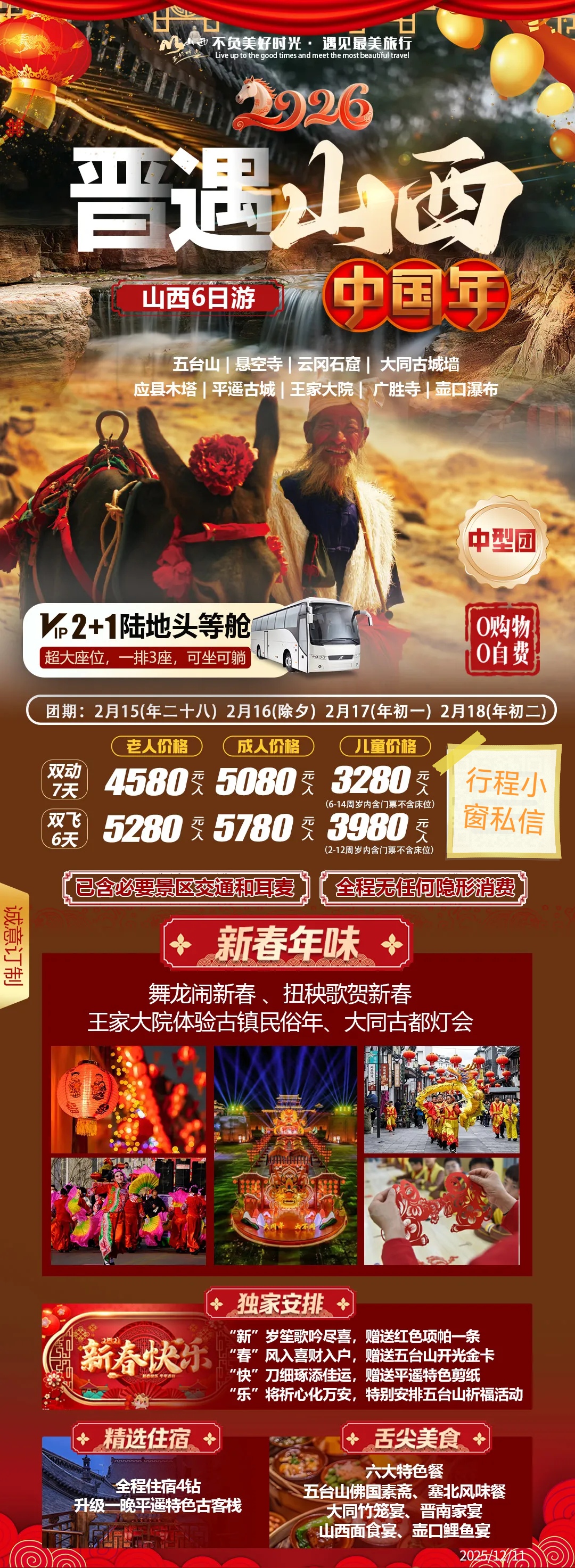 您预订的是:   【晋遇山西.中国年】双飞6天