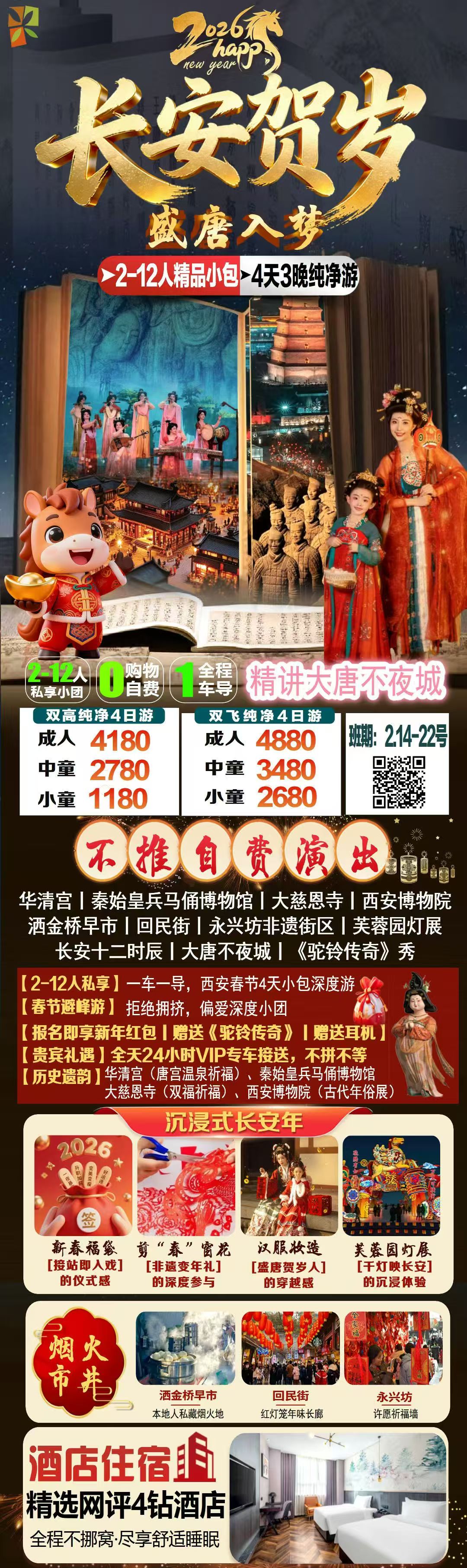 您预订的是:   🧨春节【长安贺岁】双动4日游