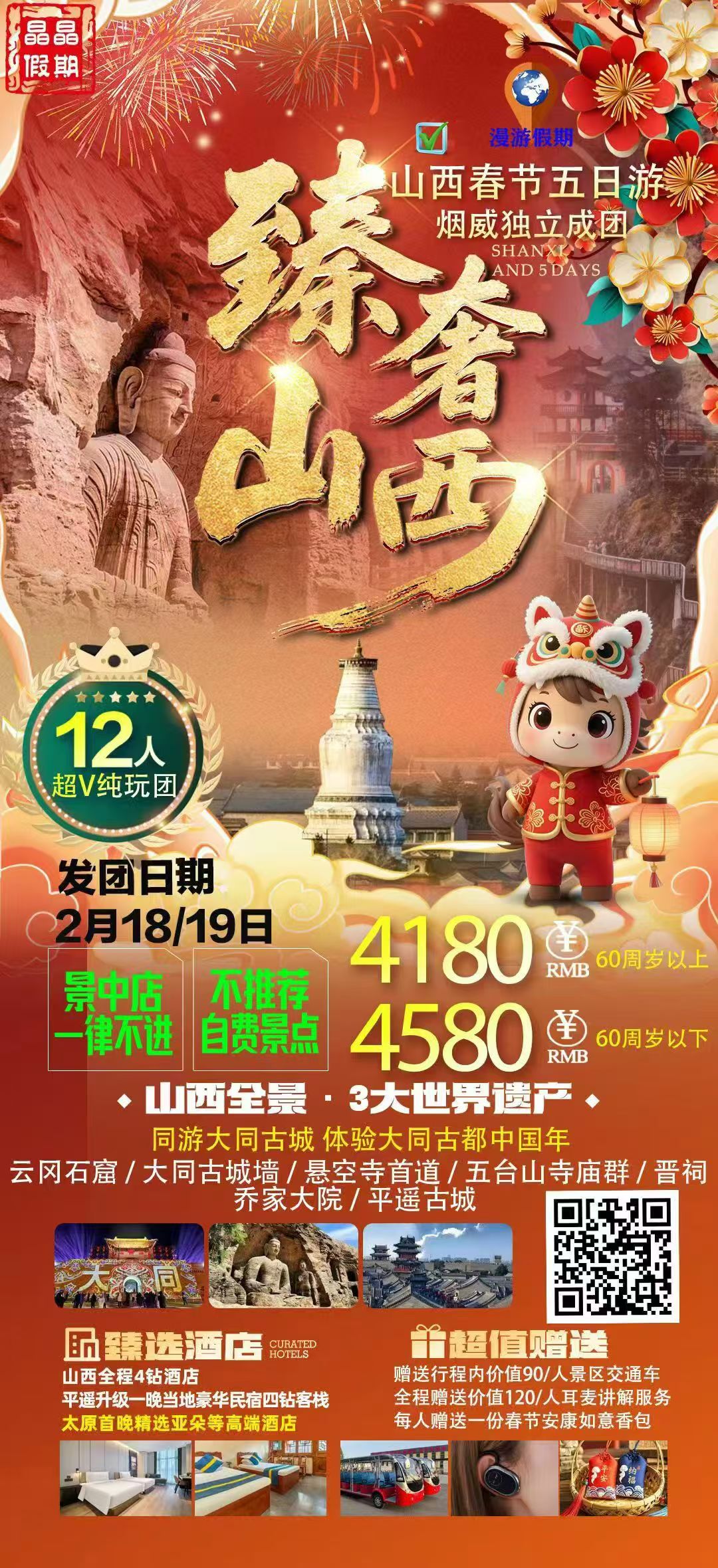 🔥12 人小团春节山西纯玩双动五日游