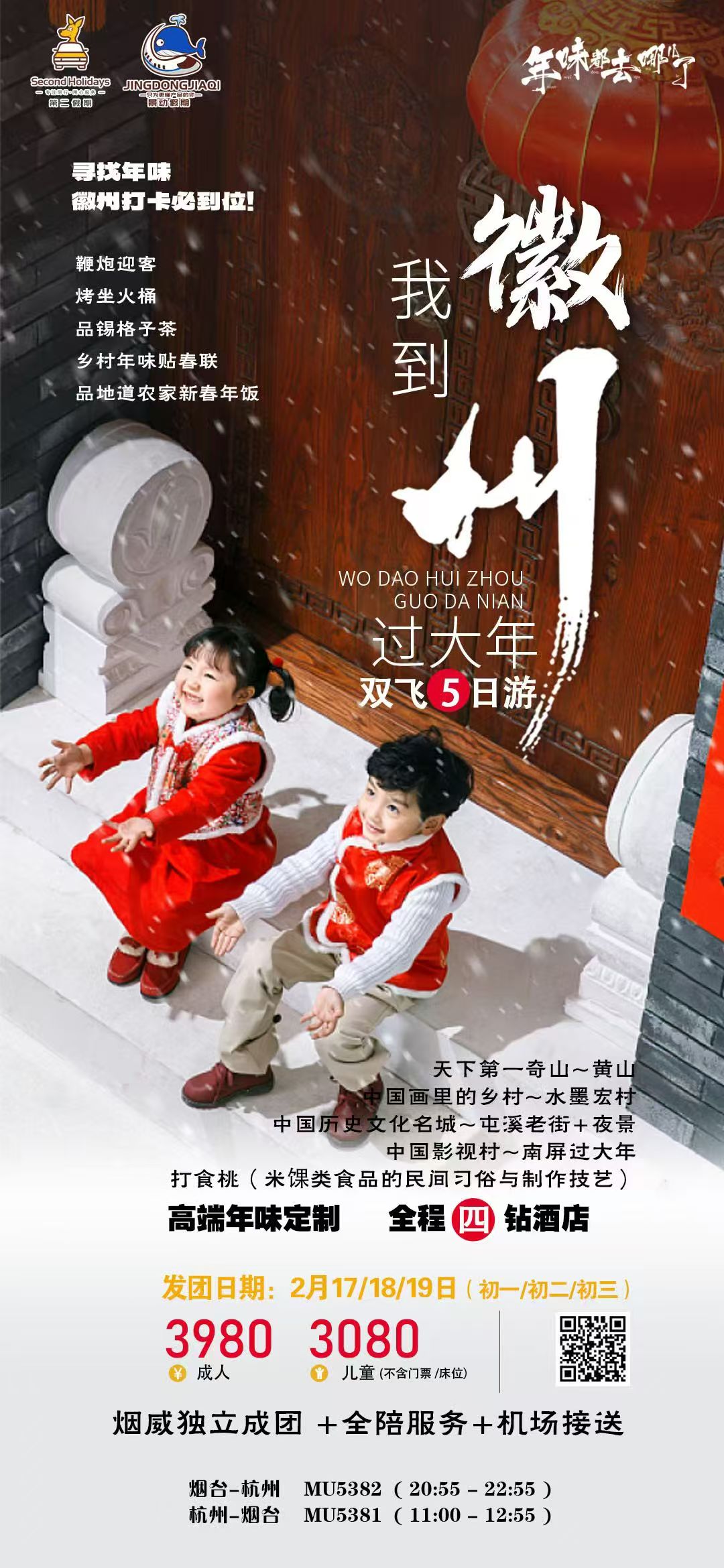 线路名称:【我到徽州过大年】纯玩双飞5日游