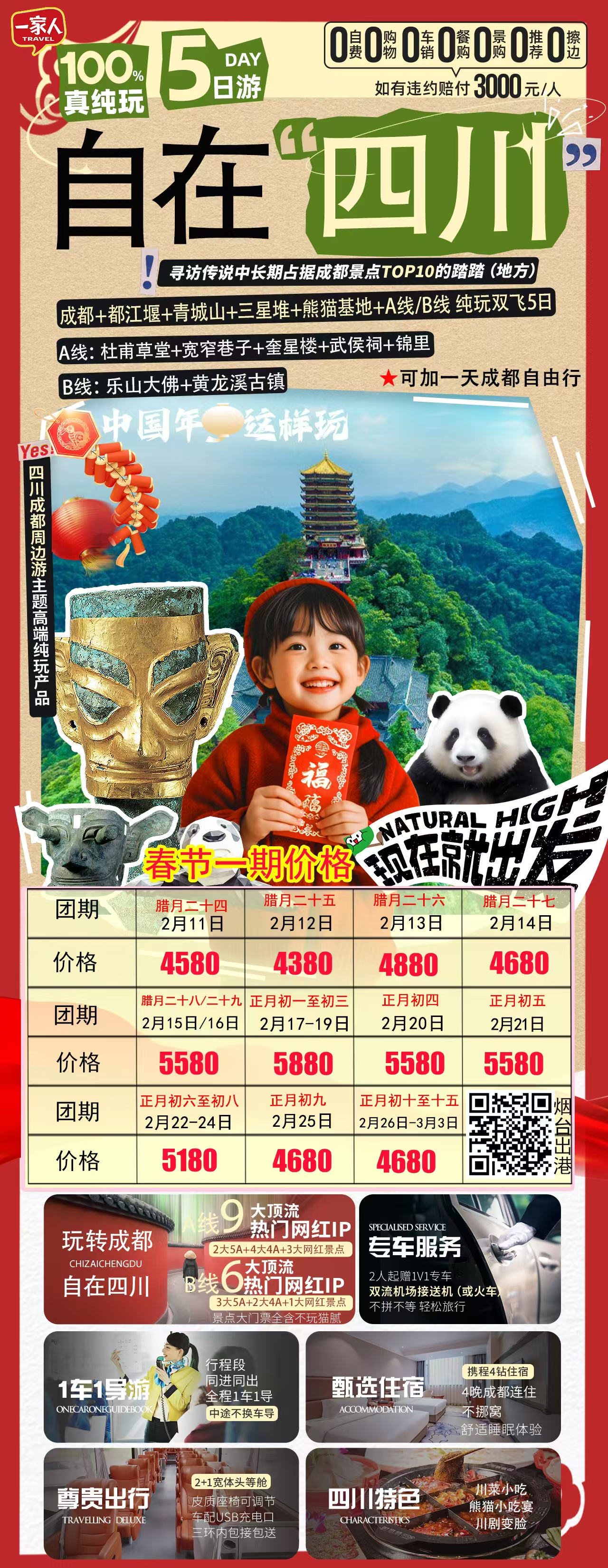[福]春节[福]品质纯玩💯【自在四川】双飞5天