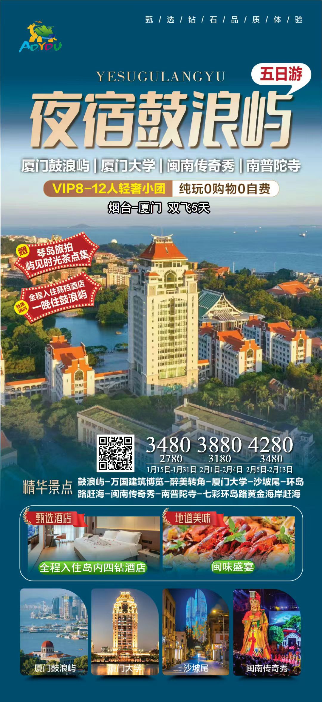 🎼夜宿鼓浪屿/厦门双飞5日游