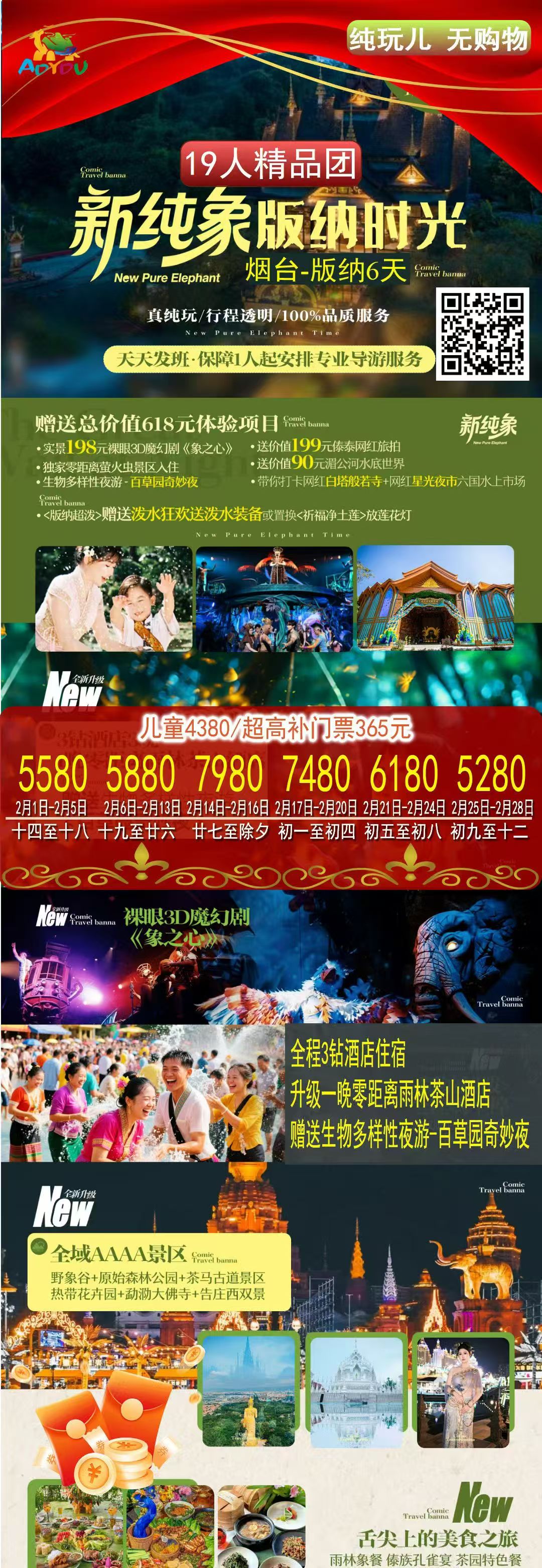 3D魔幻剧【象之心】/傣泰网红旅拍/湄公河水底世界/生物多样性夜游/网红般若寺/星光夜市/六国水上市场