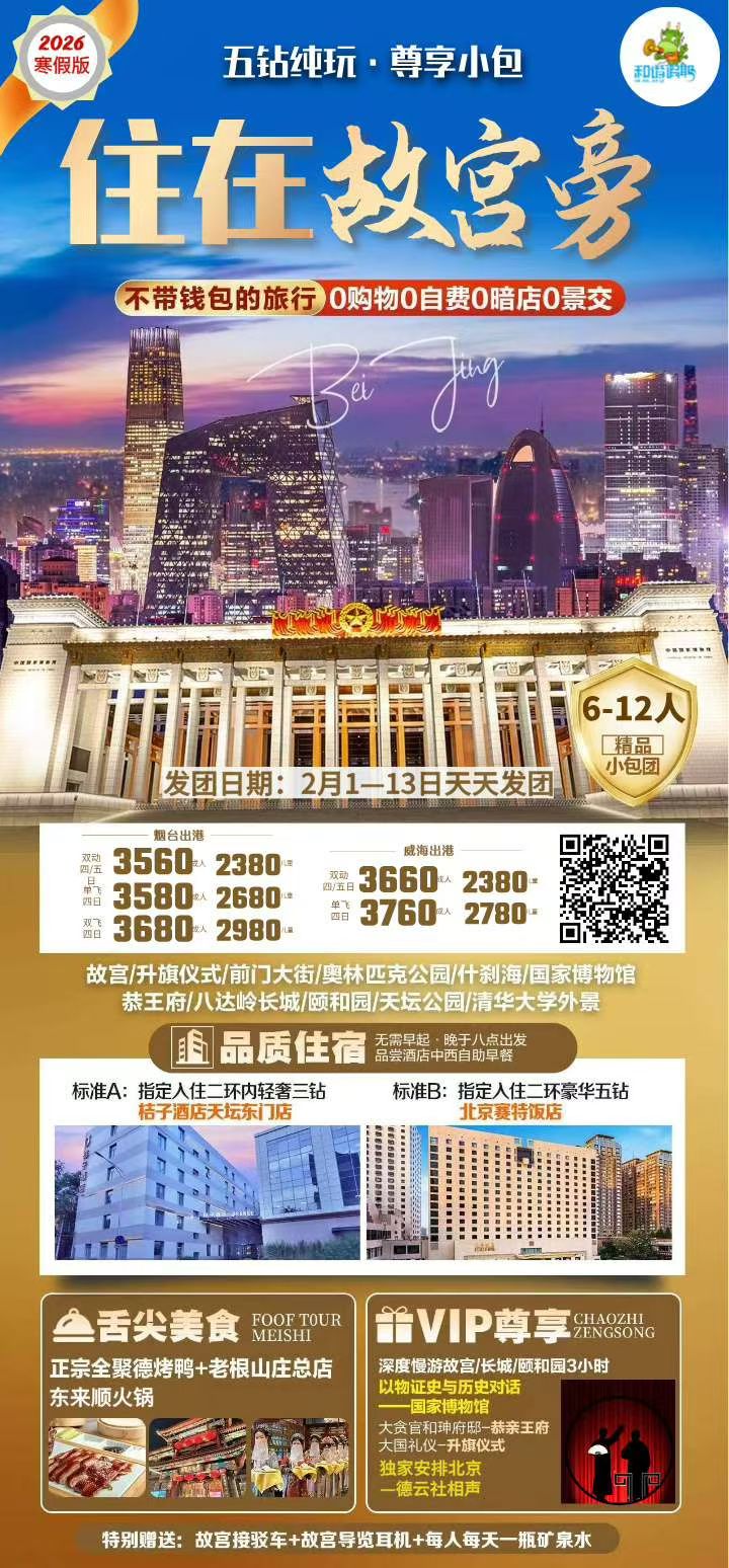 线路名称:🌵寒假北京~住在故宫旁双动四天