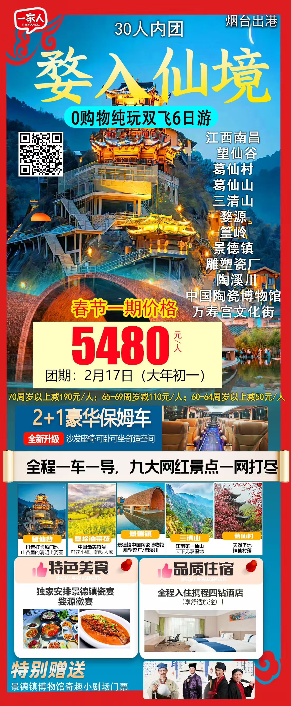 [福]春节[福]一车一导‼️纯玩💯高品质【江西·婺入仙境】双飞6日游