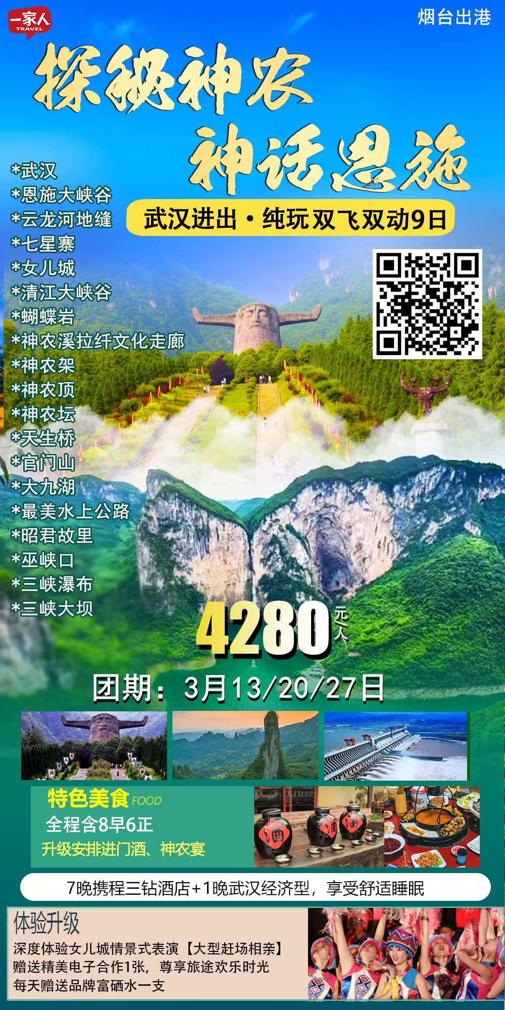 3🈷️13/20/27号💯纯玩【湖北·武汉+恩施+宜昌+神农架】纯玩双飞双动9天