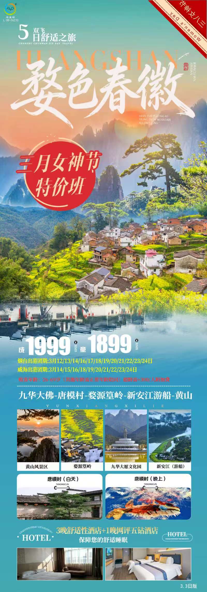 🌼婺色春徽·双飞五日3月女神节特价班,