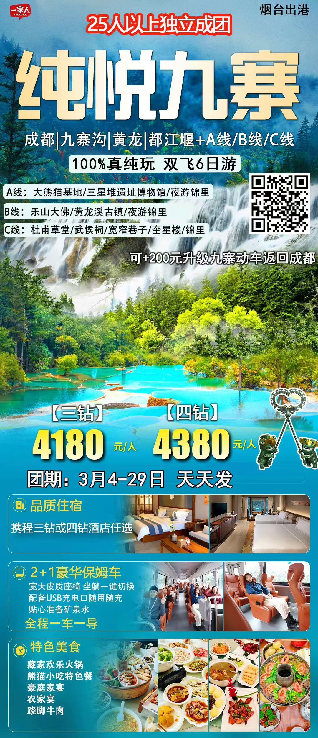 线路名称:真纯玩💯【四川·纯悦九寨】双飞6天
