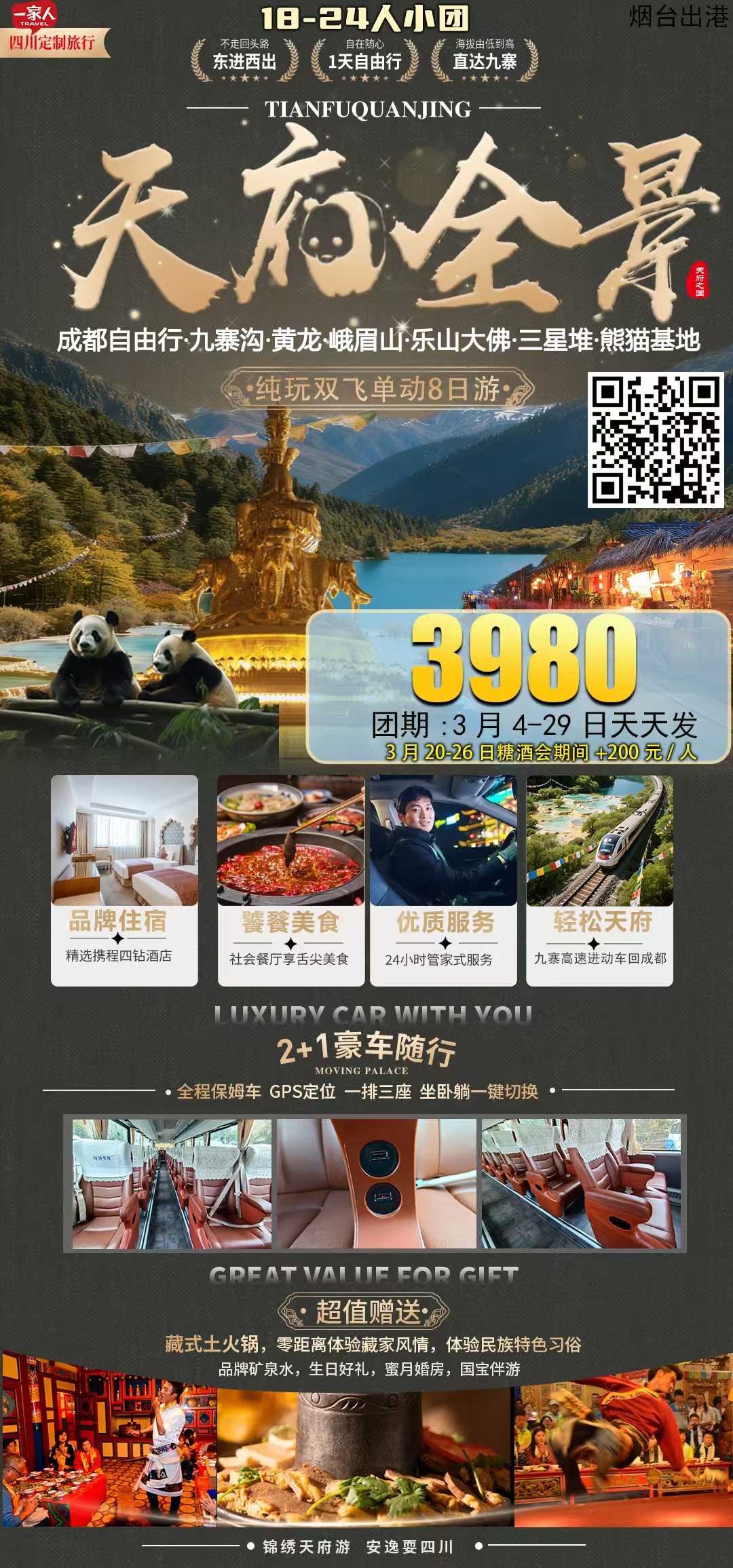 🚄双飞单动8日⭐18-24人内小团💯纯玩【天府全景】