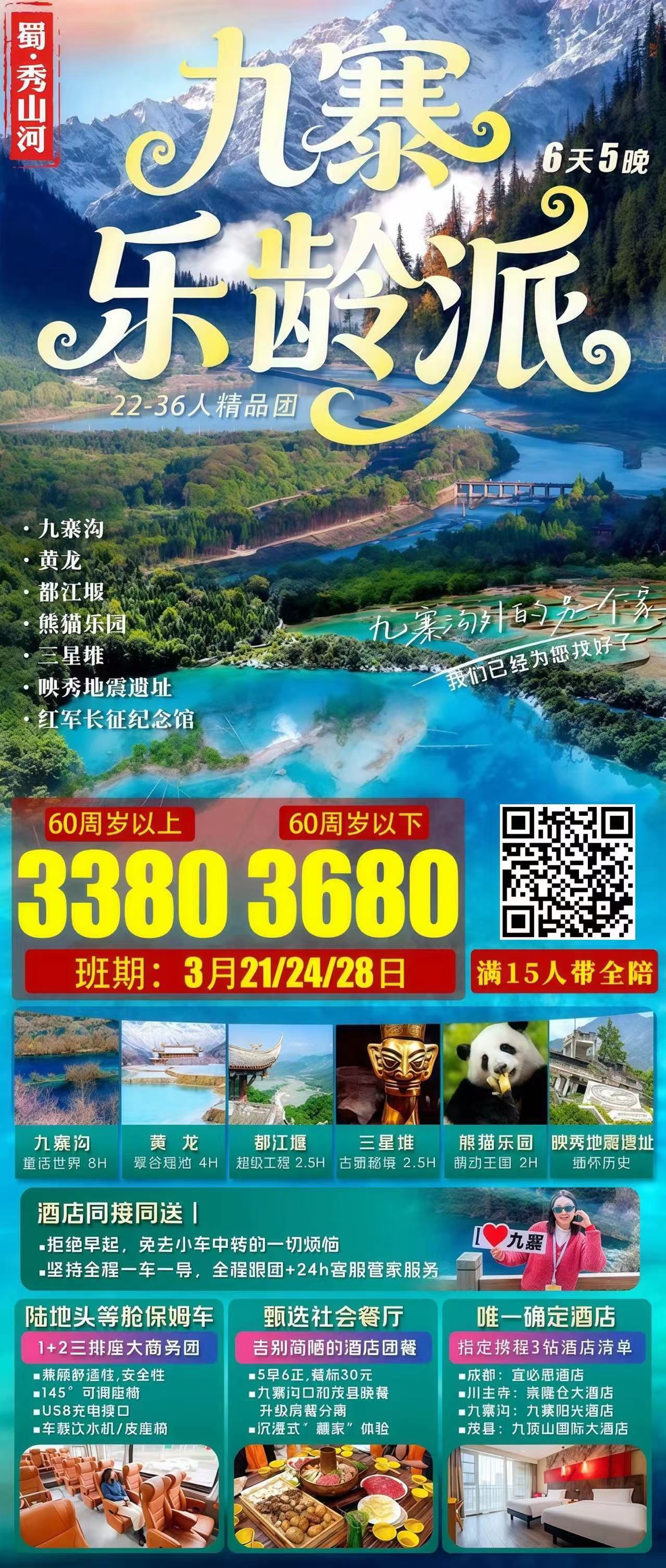 线路名称:【蜀.秀山河】3🈷️《九寨乐龄派》全陪班6日