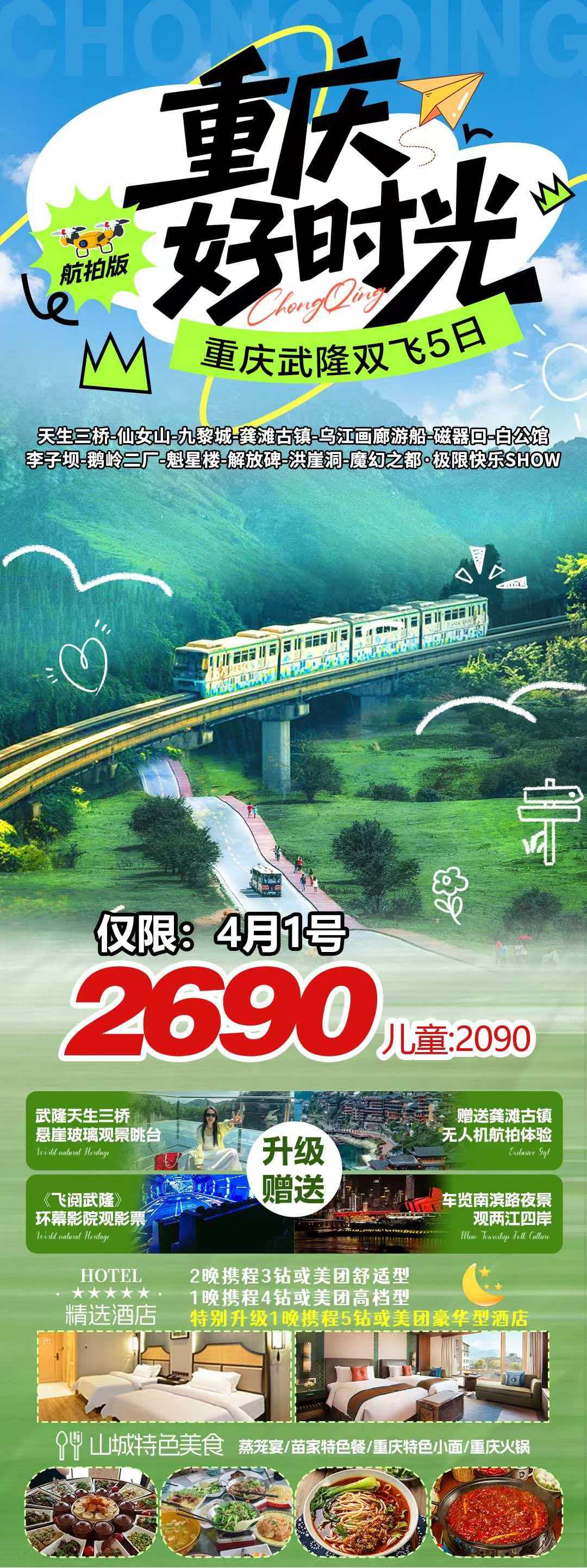 线路名称:【重庆好时光】天仙九龚深度纯玩双飞5日