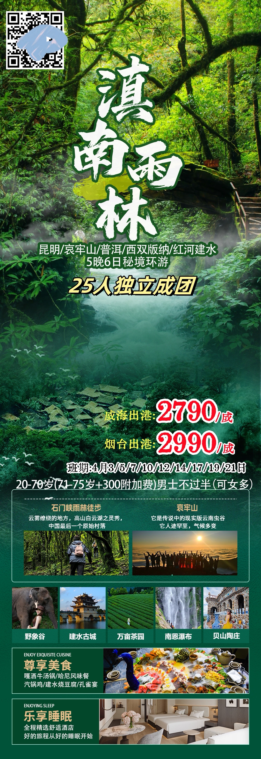 威海飞昆明!昆明|哀牢山|普洱|西双版纳|红河|建水 5晚6日(自组班)