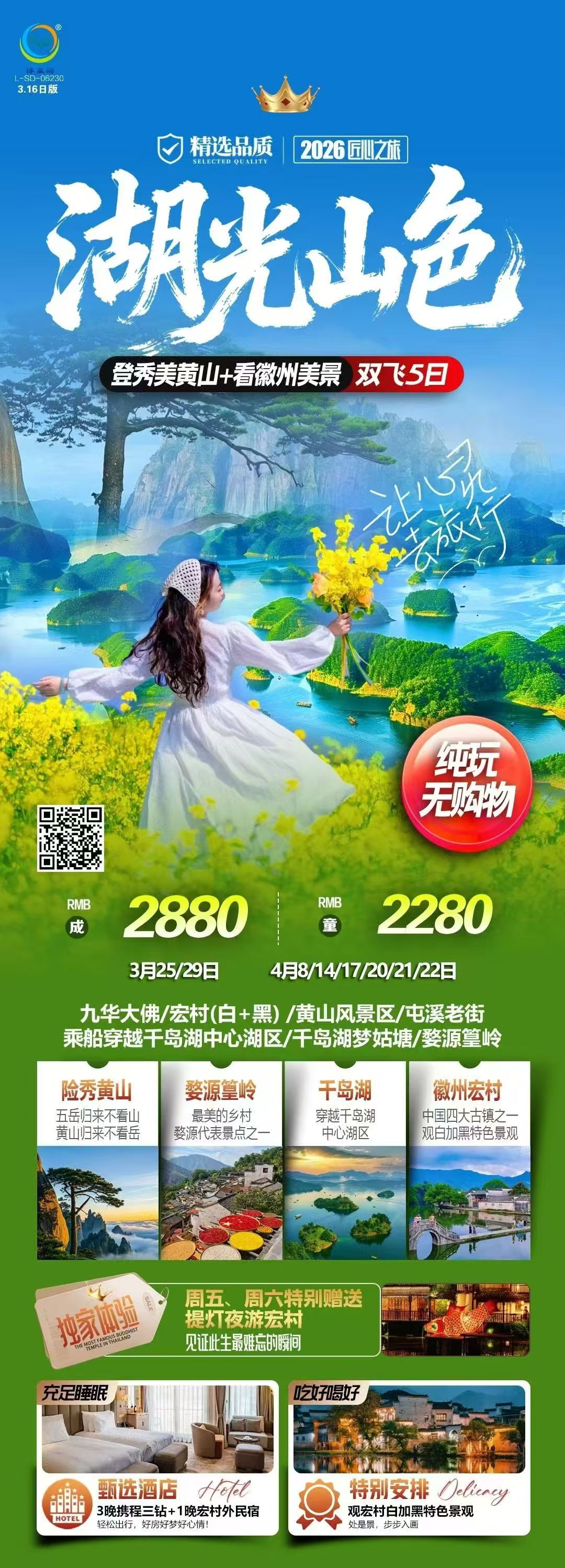🌺徽州+黄山+千岛湖+婺源全线三省经典游