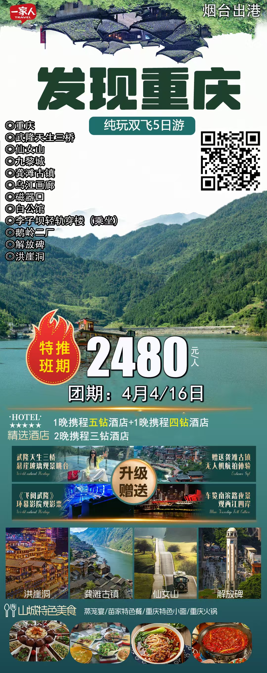 特推4🈷️4号、16号💥【发现重庆】纯玩💯双飞5日游
