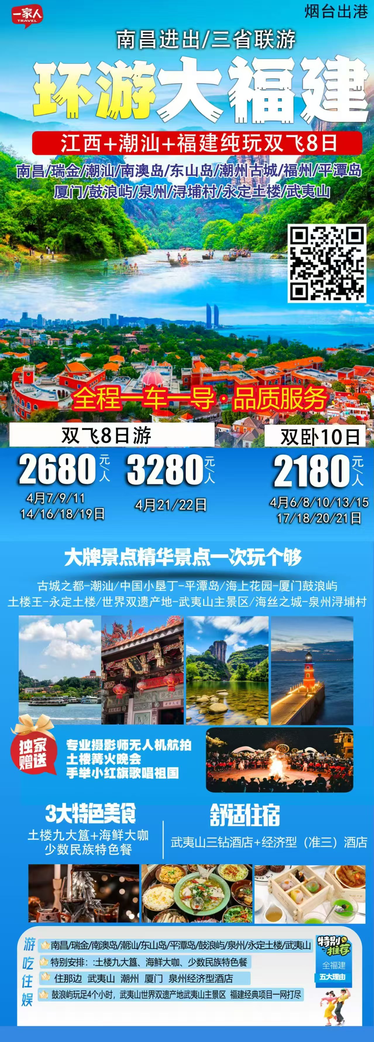 线路名称:纯玩💯《江西+福建+广东·潮汕》三省联游【环游大福建】纯玩双飞8天
