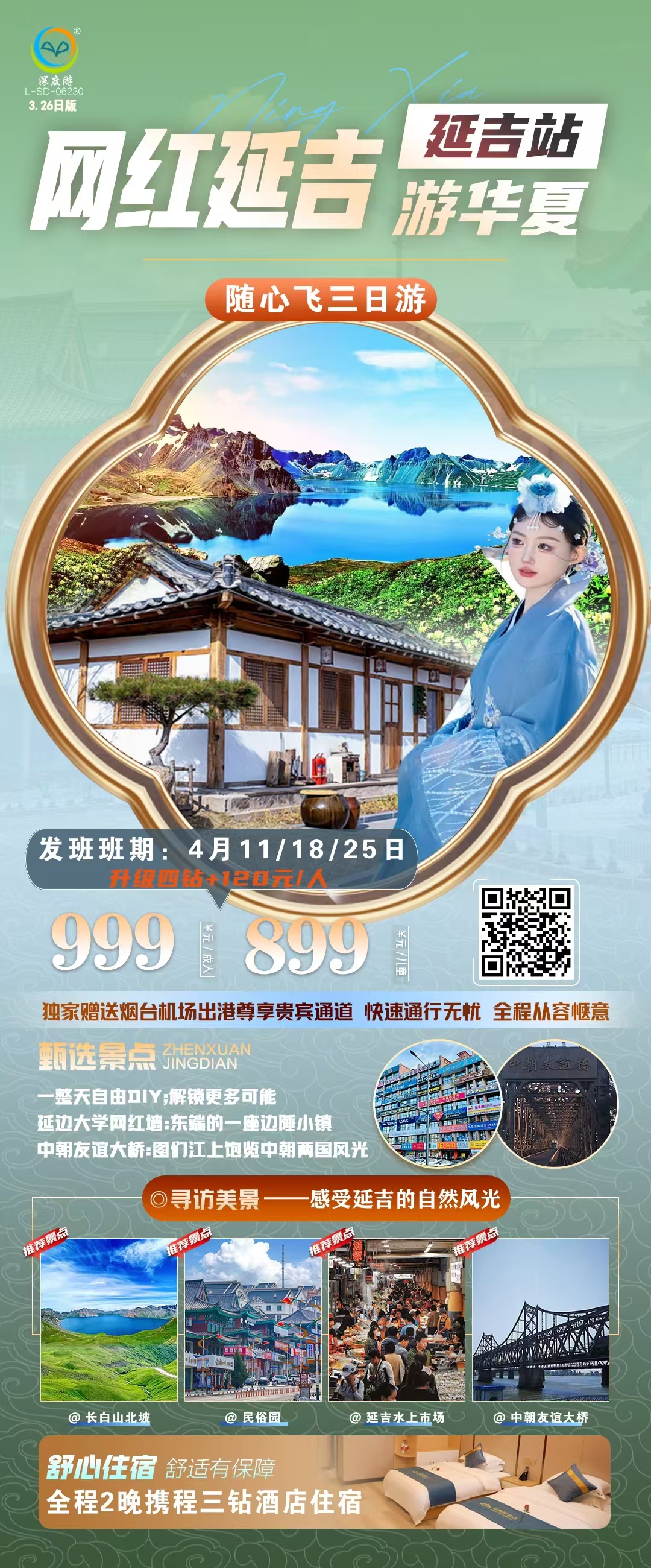 ✨网红延吉·随心飞三日游 烟台直飞延吉,解锁边境小城的烟火与仙境,性价比拉满!