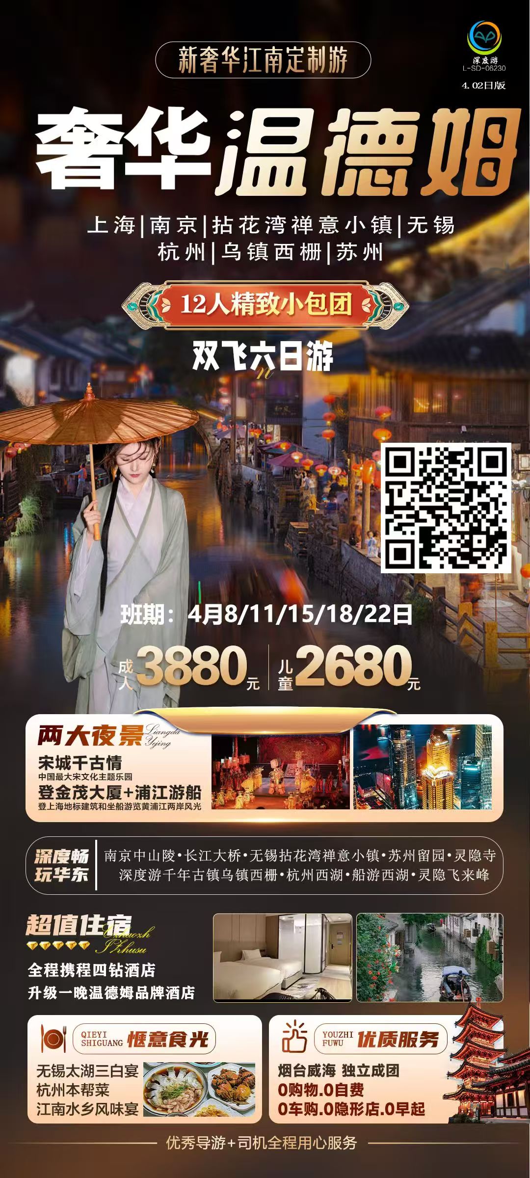 [太阳][太阳][太阳]4月奢华温德姆VIP定制,双飞六日游江南🌟