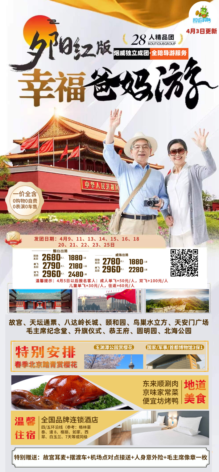 📕必选理由二:烟威独立成团带全陪,真纯玩,进店罚万,父母不花冤枉钱, 儿女放心